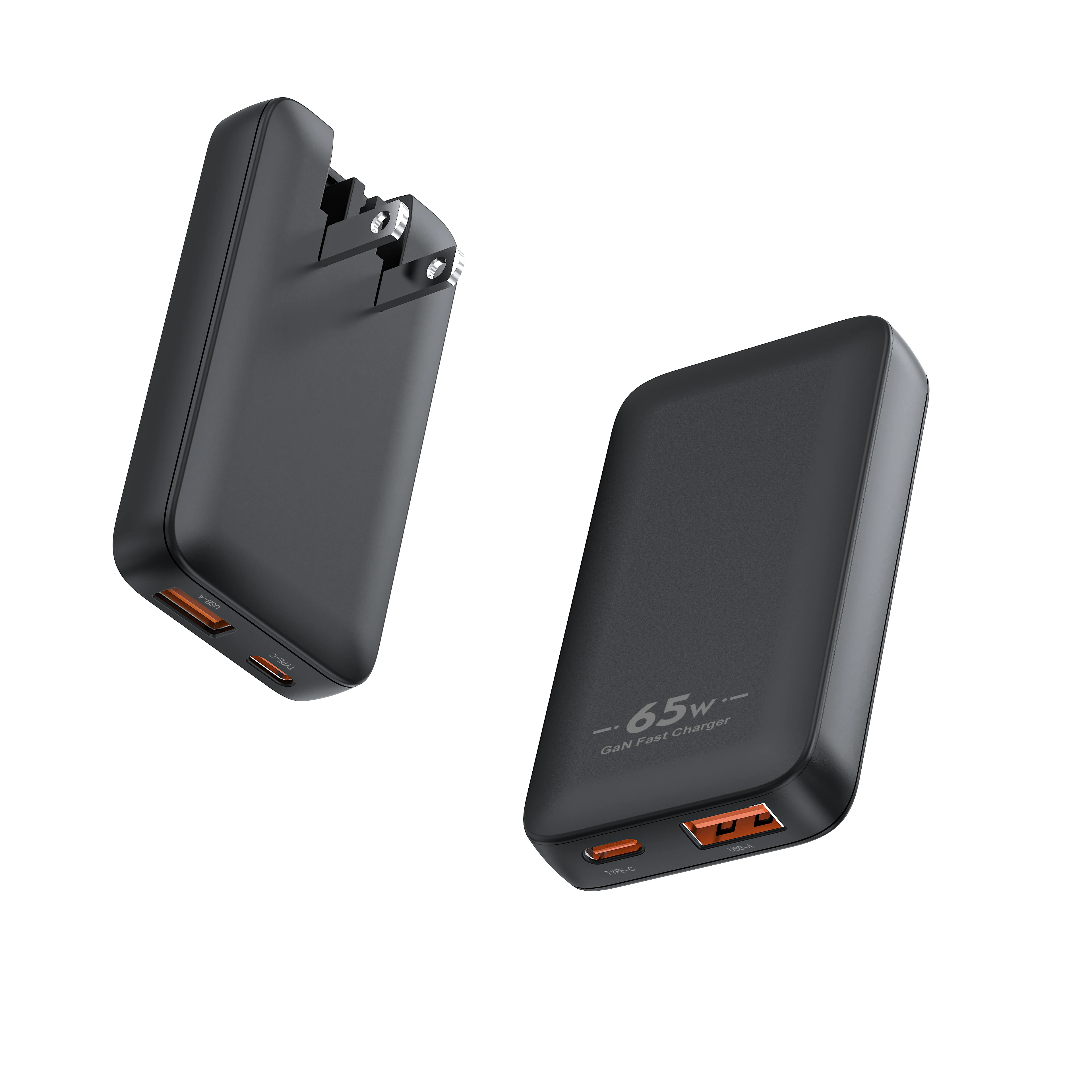 65W GaN Flat USB C Wall Charger Ultra Slim Dual Port USB-A & USB-C Folding Travel Charger for Phones And Tablets