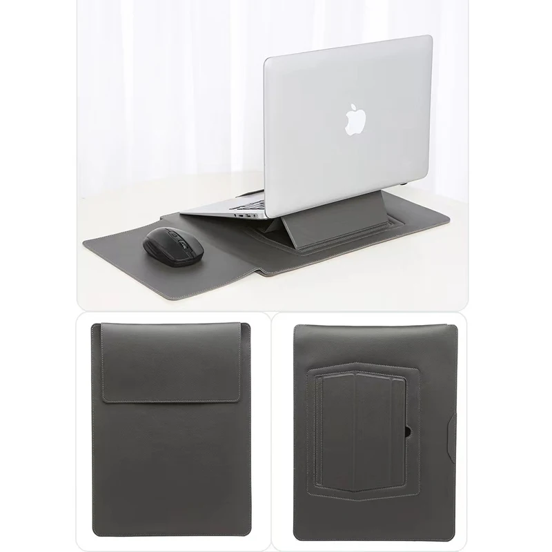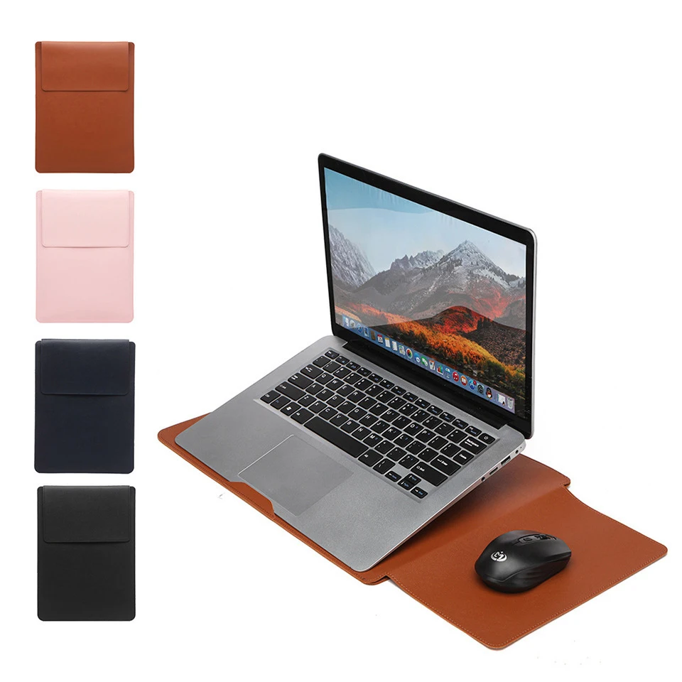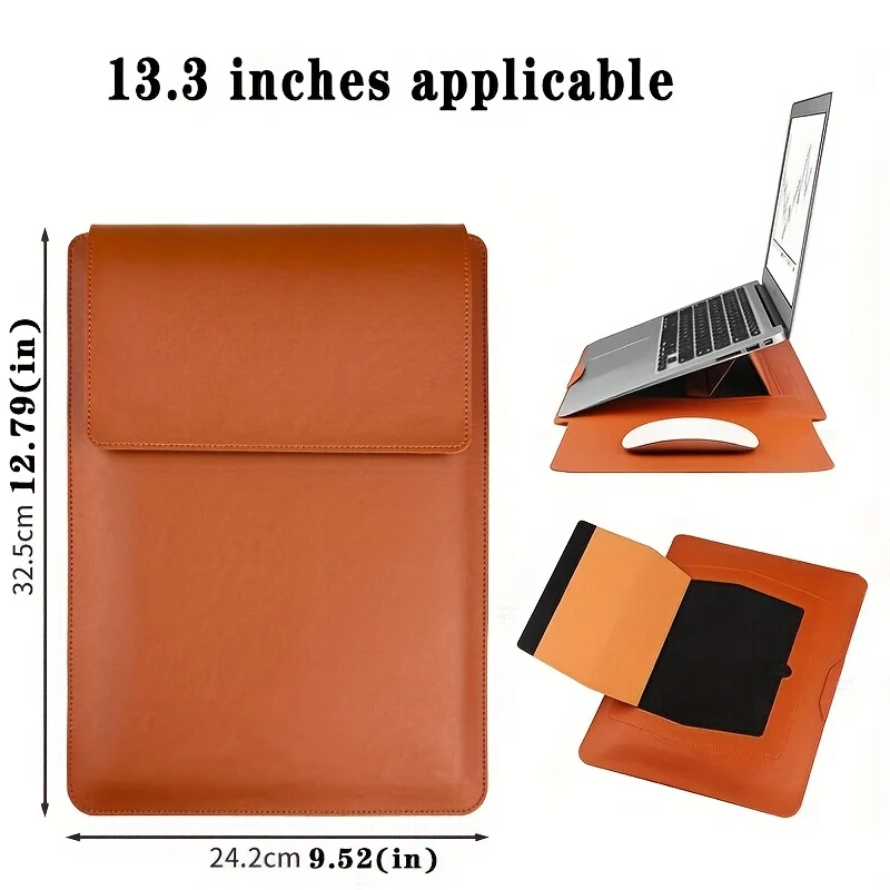 Dormin Leather Laptop Sleeve 13.3’15.6′ with Adjustable Ergonomic Stand Non Magnetic Velcro Design Portable Case for Mac Dell HP