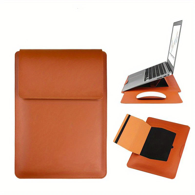 "Leather Sleeve & Ergonomic Stand Combo – 50% Slimmer than Carrying Separate Cases"