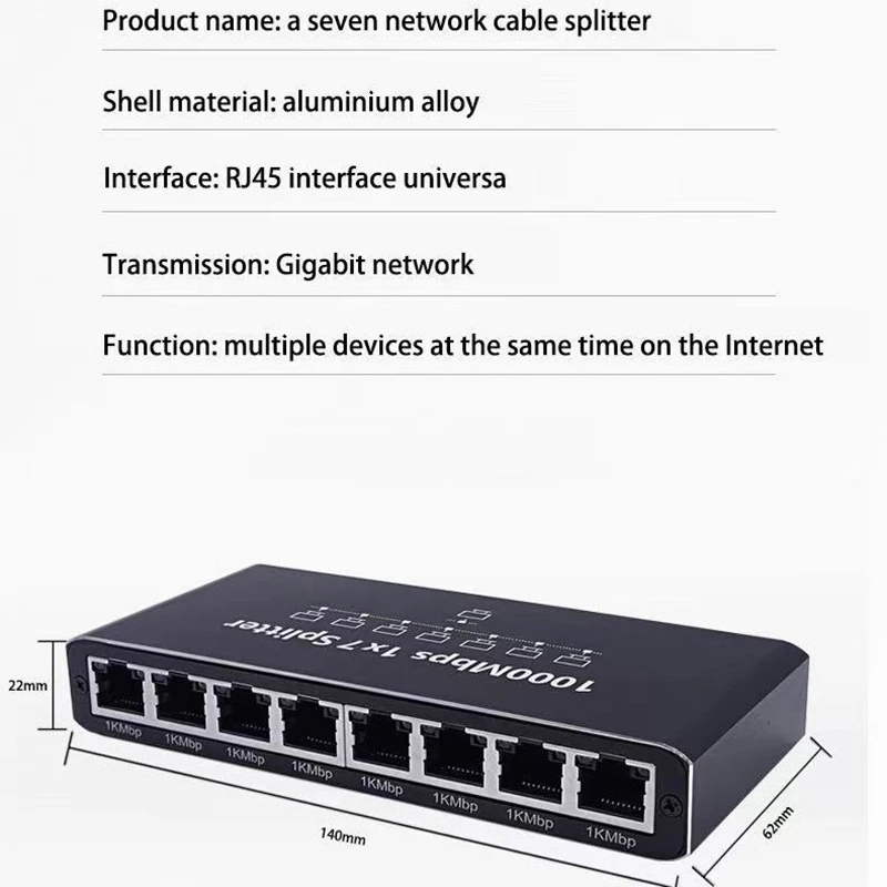 Only 1 Rj45 splitter to achieve 1 network port extending 7 network ports.