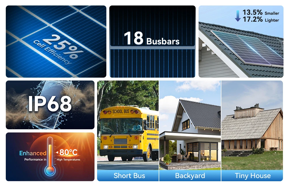 WERCHTAY 12V 200W Monocrystalline Solar Panel 18BB N-Type Module Off Grid PV Power Cells Waterproof For Roof Home Off Grid