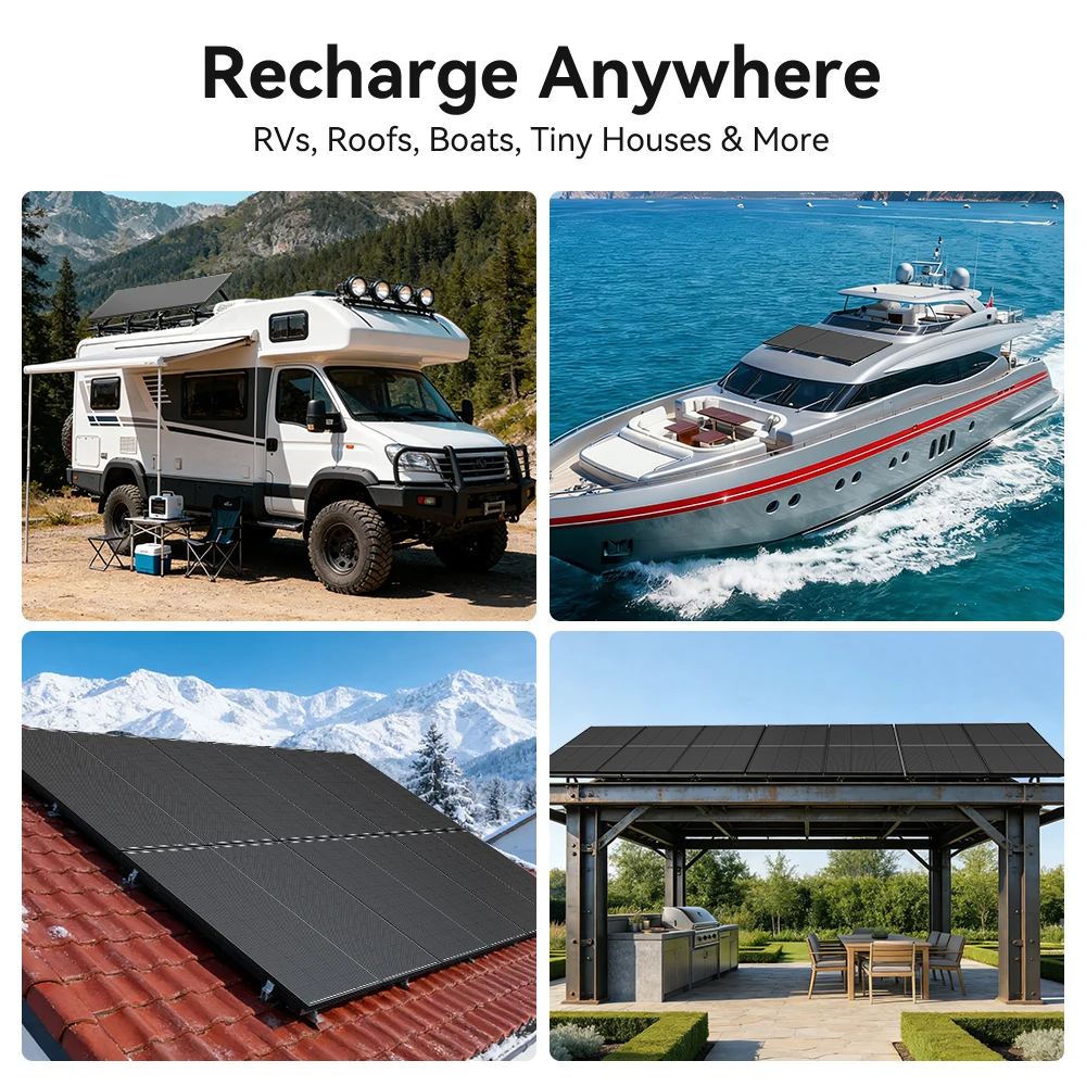 Rvpozwer 12.8V 200W Monocrystalline Solar Panel 18BB N-Type Module Off Grid PV Power Cells Waterproof For Roof Home Off Grid